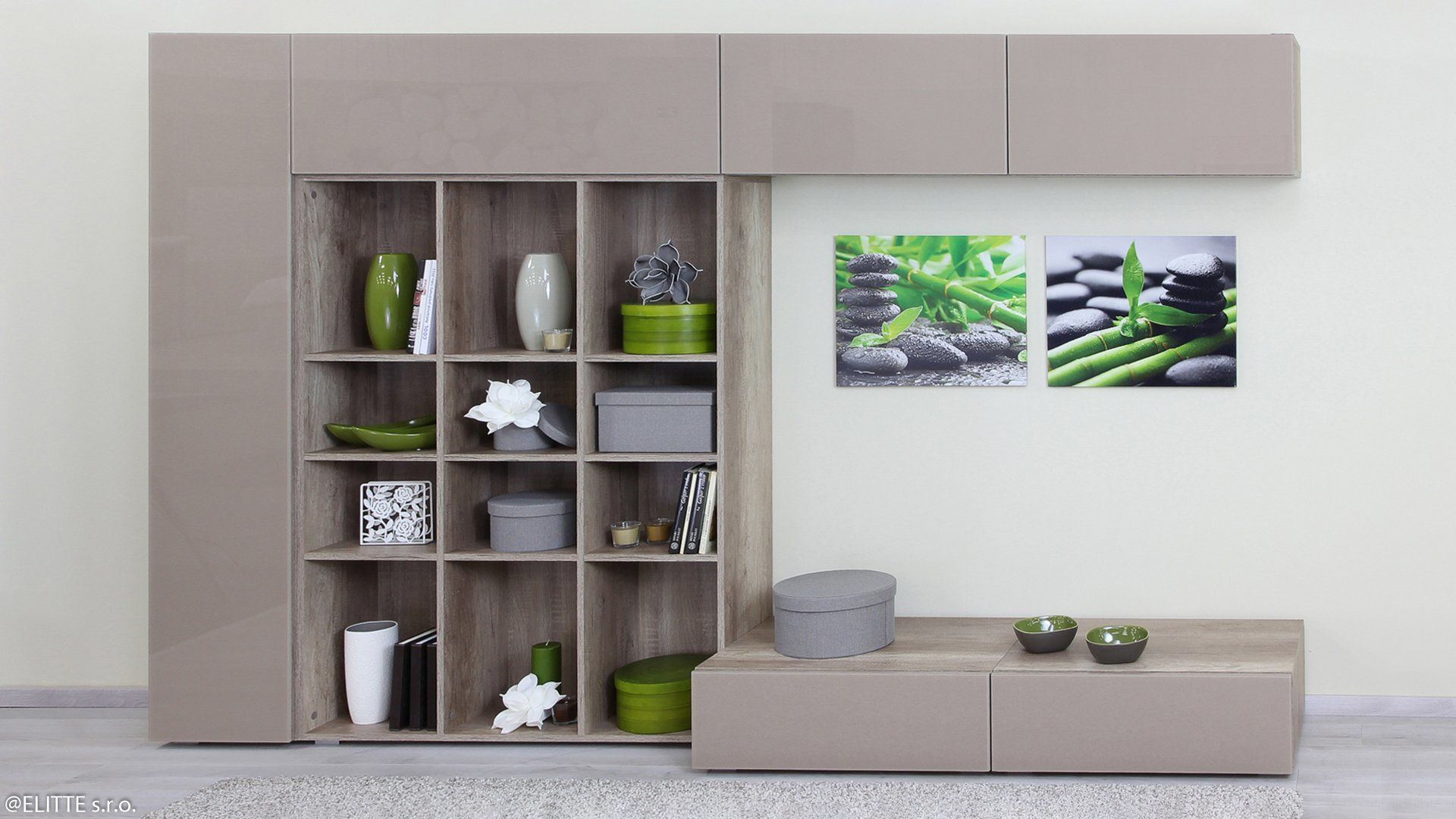 Elegantní sestava do velkého i malého obývacího pokoje v moderním barevném provedení. Obývací pokoj je kvalitní Slovenský nábytek vyráběný společností DREVONA. Moderní obývací sestava má ideální proporce a proto se hodí do každého prostoru. REA REBECCA je určena do obývacího pokoje a poskytuje spoustu úložného řešení ve spodní i vrchní části sestavy. Spodní skříňky a také horní skříňky je možné v obývacím pokoji umístit dle vlastního uvážení a potřeby, případně je lze doplnit o další skříňky , vitríny a knihovny ze sektorového nábytku REA REBECCA.