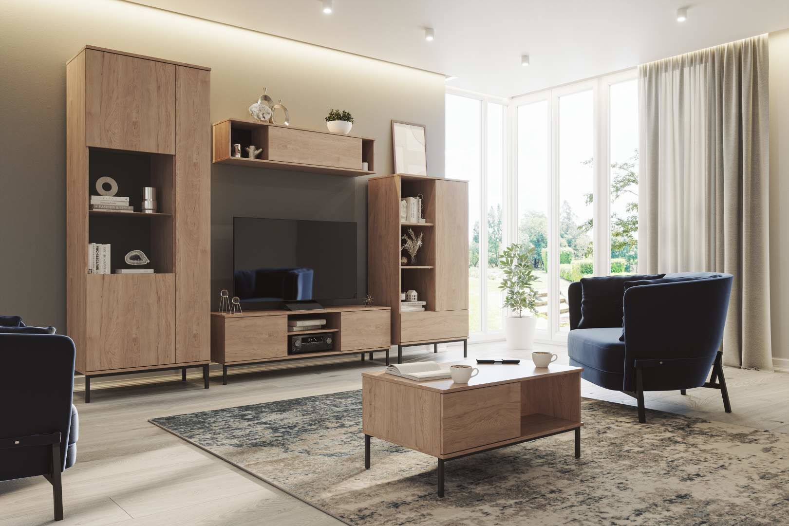 Právě díky vnitřnímu uspořádání, ale také stylovému barevnému odstínu, je tato sestava vhodná pro vybavení moderního interiéru. Hodí se jak do obývacího pokoje tak i do jiných místností vašeho bytu.