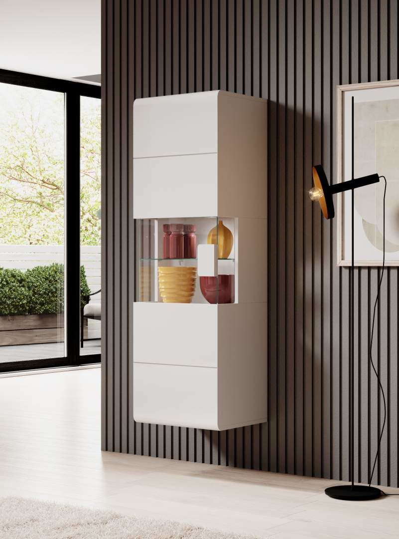 Závěsná vitrína TOLEDO 07 - je moderní vitrína s prakticky řešeným vnitřním uspořádáním. Vše naleznete přehledně na svém místě. V nabídce je také s LED osvětlením. Nabízíme v barevném provedení Bílá/ bílý lesk.