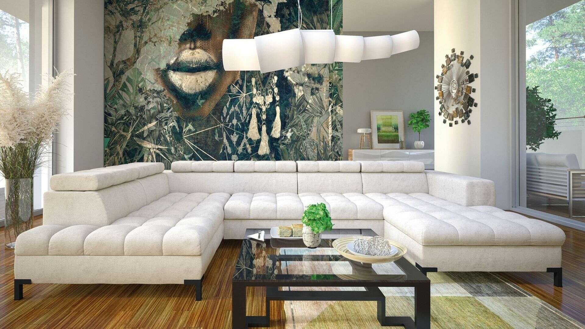 - moderní pohodlná sedací souprava s úložným prostorem a rozkladem na lůžko 272 x 140 cm. Velký výběr potahových látek včetně omyvatelných a volba barev u nohou.