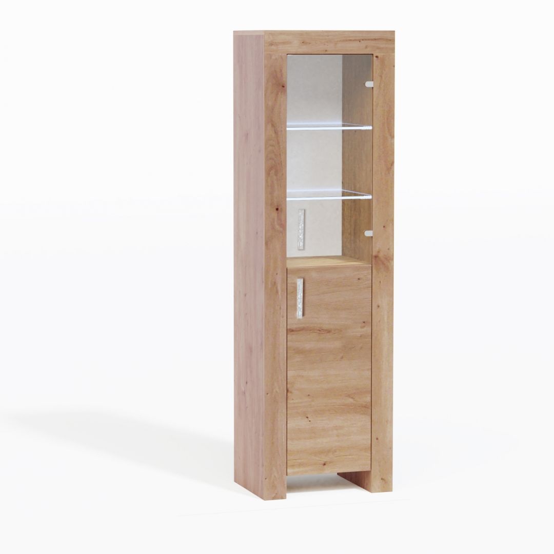 Vyzkoušejte originalitu s precizním řemeslným zpracováním v podobě moderní prosklené vitríny HERMES . Tato prosklená vitrína je díky své prostornosti a množství úložného prostoru praktickým pomocníkem v každé domácnosti. Stylová prosklená vitrína dodá vašemu interiéru zajímavý vzhled a zaslouženou pozornost. Ve vnitřní části vitríny se nachází také police. Prosklená vitrína je vyrobena z lamina , které věrně imituje reliéf dřeva. Lamino je tloušťky 16 mm. Prosklená vitrína je dostupná v oblíbeném barevném dekoru dub artistan . Na vitríně se nacházejí designové detaily, které podtrhují celkový moderní vzhled prosklené vitríny. Právě díky vnitřnímu uspořádání, ale také stylovému barevnému odstínu, je tato prosklená vitrína vhodná pro vybavení moderního interiéru. Tuto prosklenou vitrínu lze zakoupit samostatně a nebo jako součást variabilního nábytkového systému WERONA . Led osvětlení