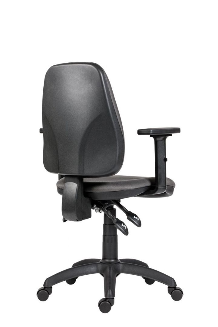 Kancelářská pracovní židle se středně vysokým opěrákem, ASYN - asynchronní mechanismus, nezávislé nastavení úhlu sedáku a opěráku s možností aretace v libovolné pozici, nastavení výšky opěráku mechanismem up-down, výškové nastavení sedáku plynovým pístem, plastová nebo ocelová chromovaná báze, kolečka Ø 50 mm pro měkké podlahy, volitelné područky, český výrobek.