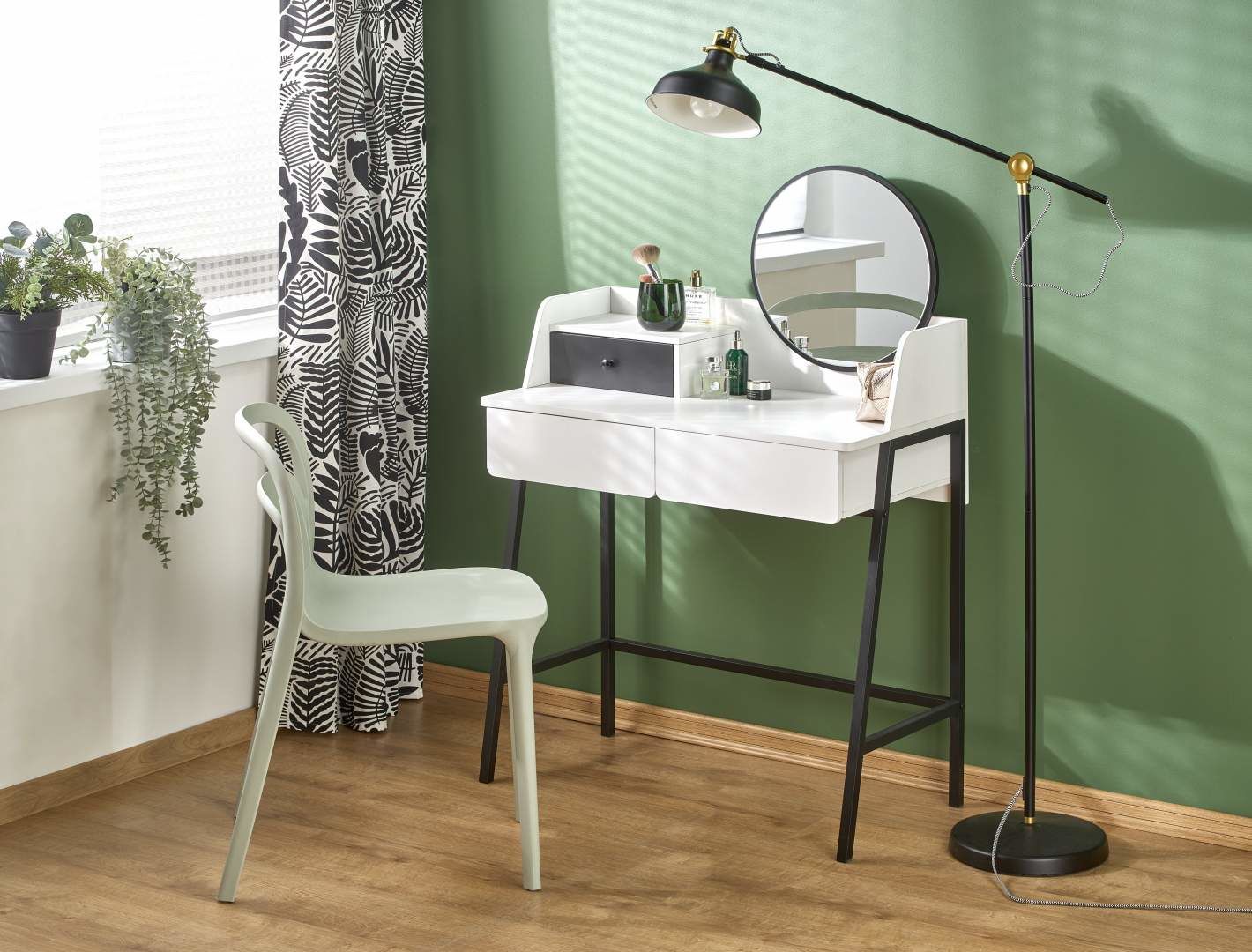 Toaletní stolek AGNES - je praktický moderní pracovní stolek vyroben z dýhované nábytkové desky v bílém barevném provedení. Tento moderní toaletní stolek je navržený v elegantním a univerzálním designu a je vybaven zrcadlem.