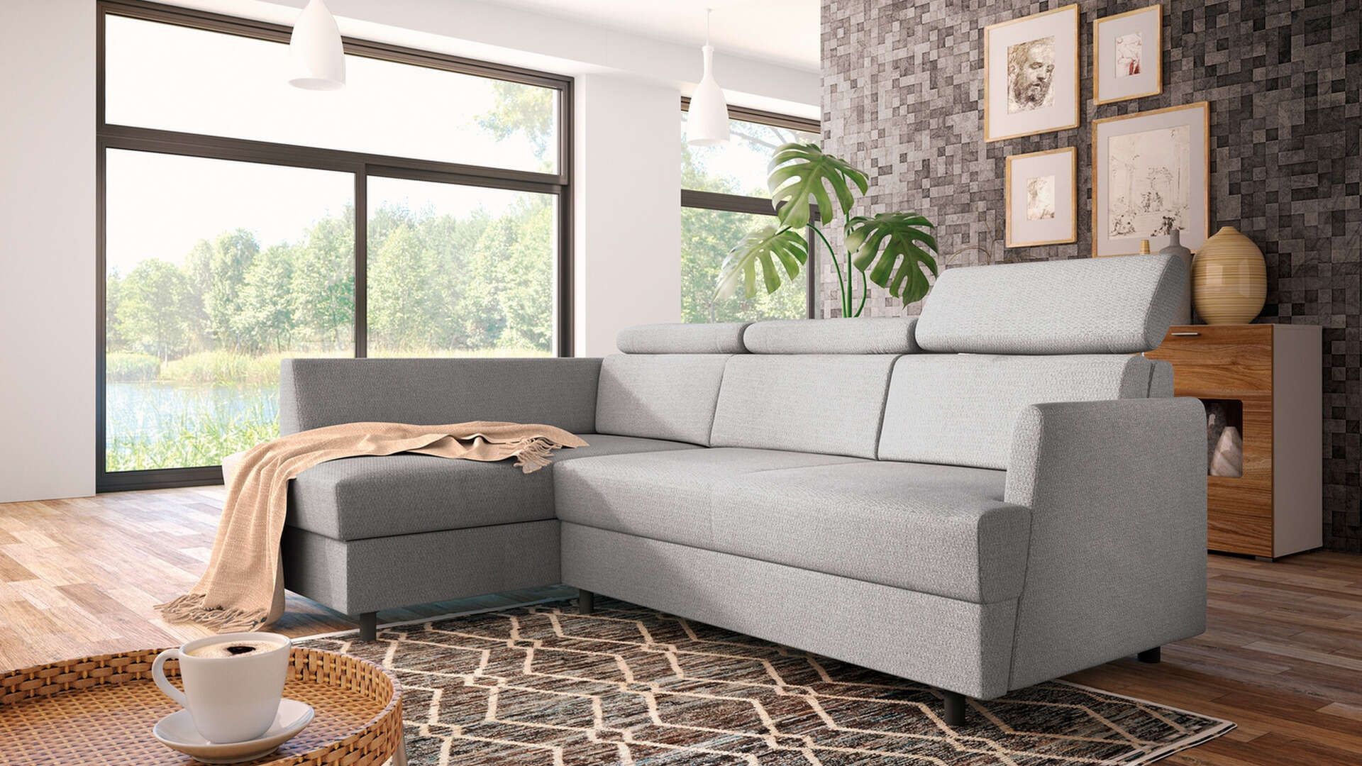 Sedací souprava FIORE - moderní pohodlná sedací souprava s rozkladem na lůžko 126 x 195 cm. Velký výběr potahových látek včetně omyvatelných. Sedací souprava má zabudovaný panel s USB portem.