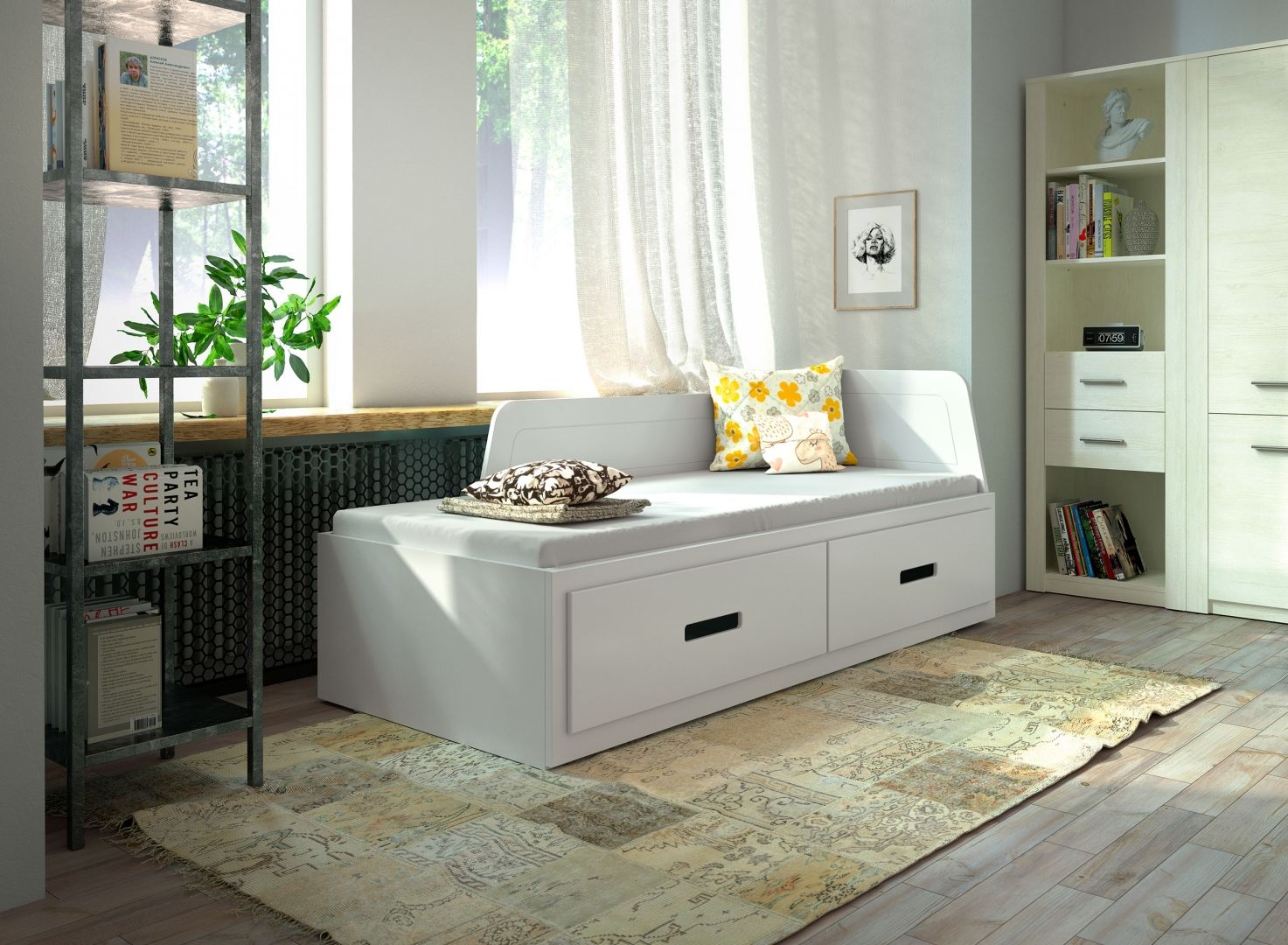 V dětském pokoji nesmí chybět dostatek místa pro spánek a odpočinek. K tomu účelu poslouží kvalitní postel vyrobena z výběrového masivu borovice. Tento stylový nábytek je vyroben z kvalitního masivu se zdravotně nezávadnou povrchovou úpravou, masiv zajistí optimální nosnost a stabilitu. Masivní nábytek se snadno čistí a je nenáročný na povrchovou údržbu. Díky výběru barevných variant je tento stylový nábytek vhodný pro dívky i chlapce. Jednoduchý a svěží design tohoto dětského nábytku oživí každý pokoj. Pod lůžkem naleznete úložný prostor v podobě dvou výsuvných šuplíků. V ceně je zahrnutý rošt.