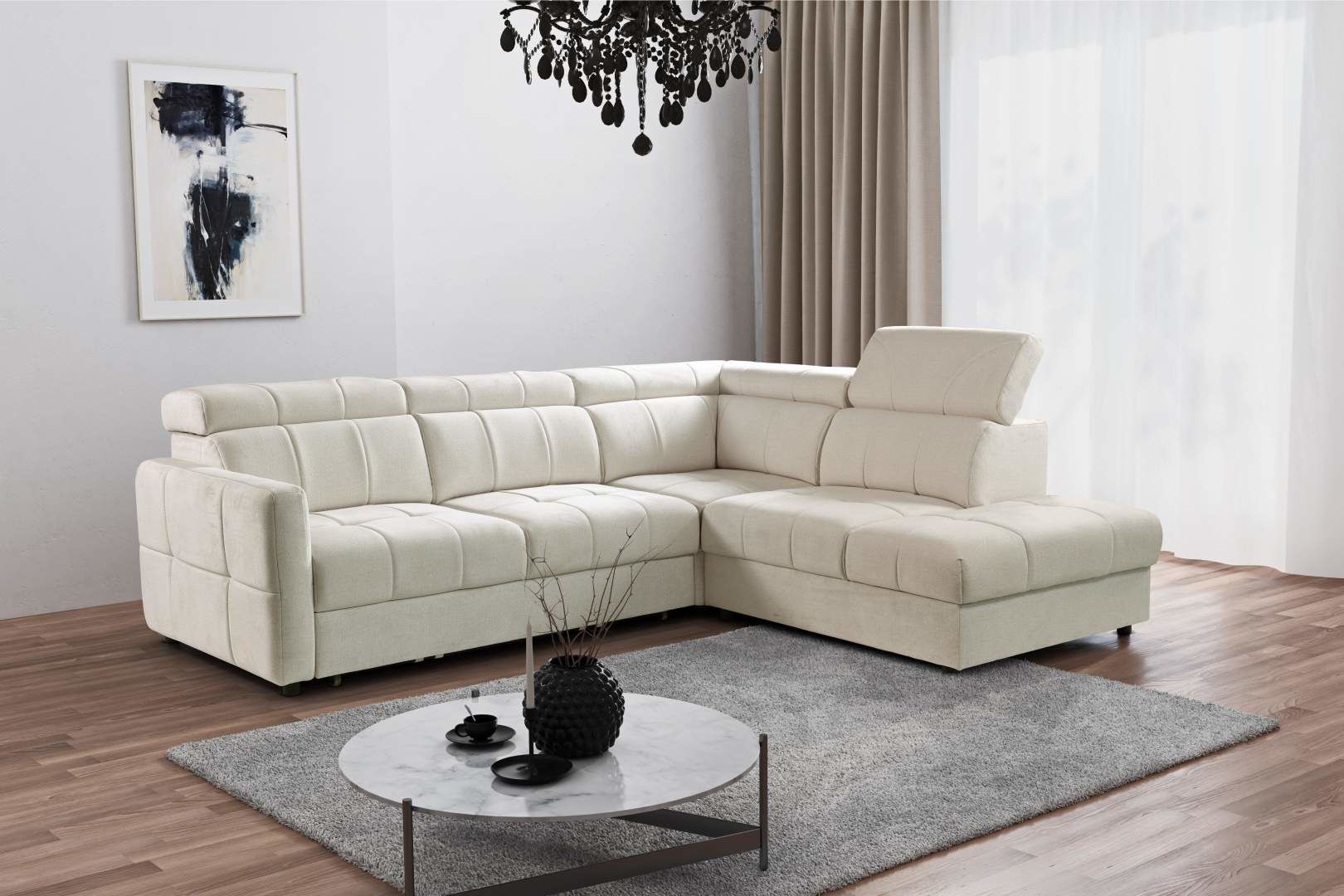 - je luxusní pohodlná sedací souprava s úložným prostorem a možností rozkladu na lůžko 125 x 195 cm. Široký výběr potahových látek.