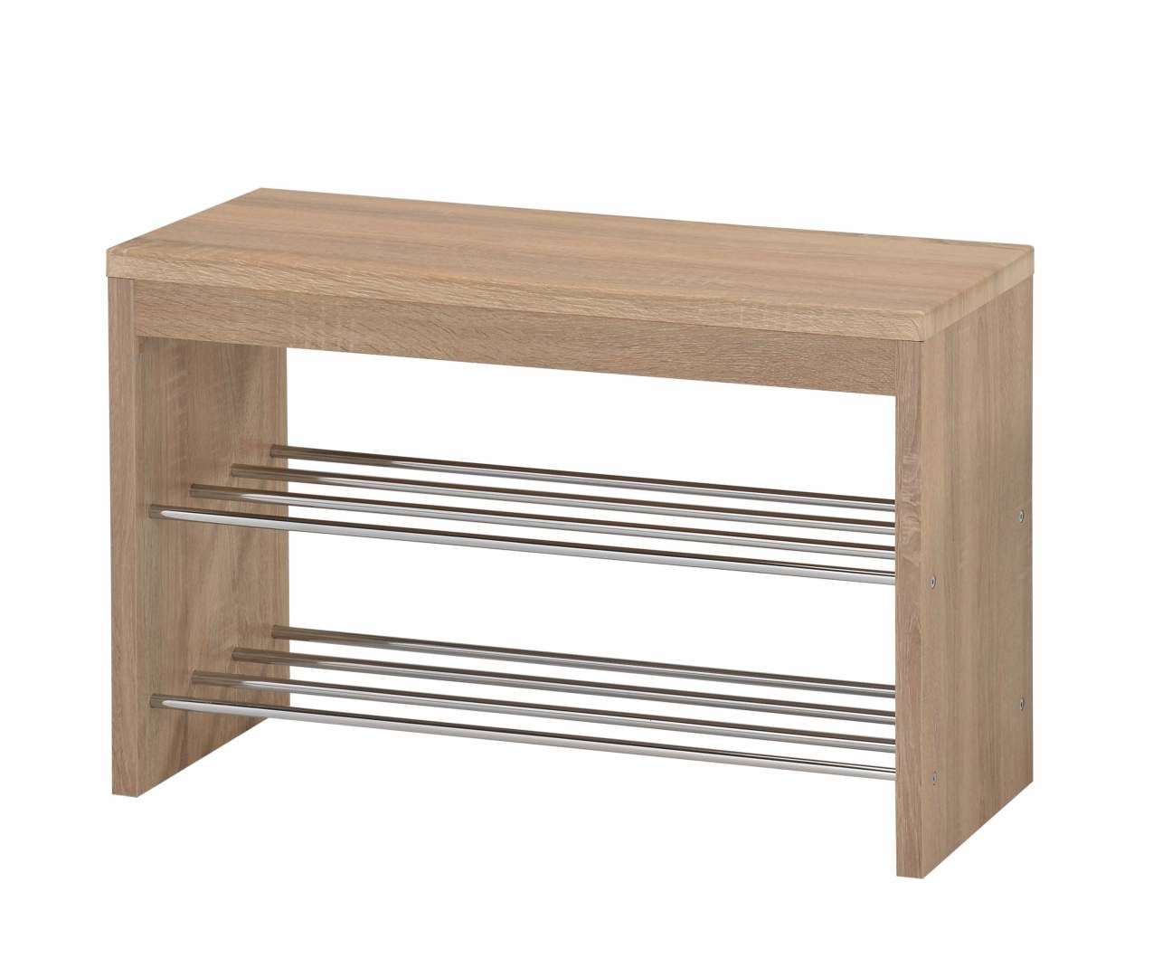Botník ST-7 - je nízký botník vhodný do předsíně. Vyrobený z MDF lamina v barvě dub sonoma, oceli. Ideální pomocník a úložný prostor na úklid bot v předsíni.