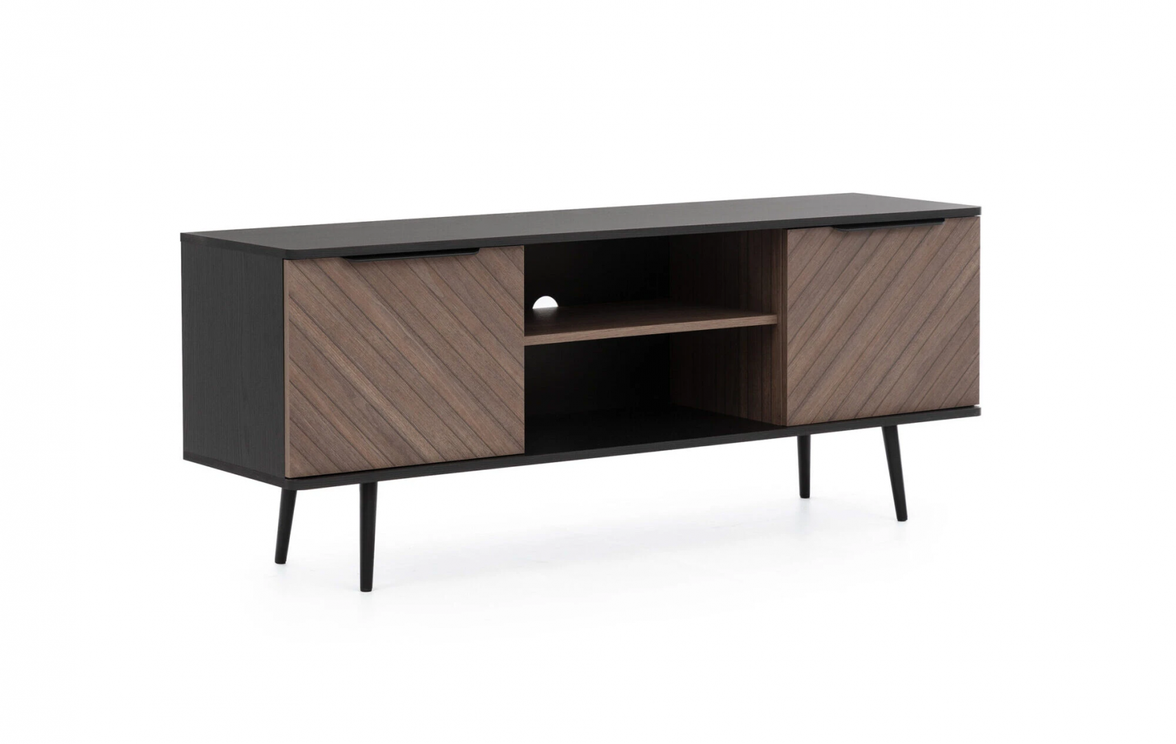 Vneste originalitu s precizním řemeslným zpracováním v podobě moderní TV komody. Elegantní univerzální komoda pod televizi dodá díky svému nadčasovému designu Vašemu interiéru zajímavý vzhled a zaslouženou pozornost. Tento praktický kus nábytku se hodí díky svému modernímu designu také do pracovny nebo kanceláře. Tuto elegantní televizní komodu lze zakoupit samostatně a nebo jako součást variabilního systému Nelli.