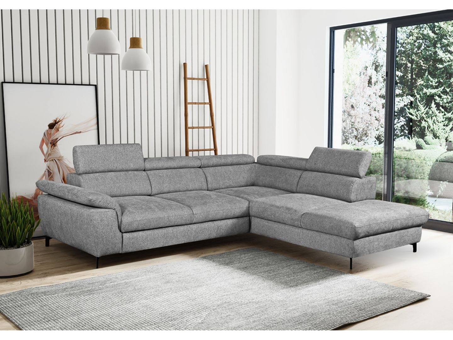 Rohová sedací souprava ALEGRO je luxusní a kvalitní nábytek, který zaujme svým elegantním designem na stylových kovových nožkách. Se svými tvary se hodí spíše do velkého prostoru. K oblíbenosti přispívá i možnost rozkladu na příležitostné lůžko. Majitelé těchto sedaček u nich ocení zejména jejich výbornou povrchovou úpravu a velké pohodlí, které poskytuje při posezení. Díky nastavitelnému vysokému opěráku je zaručeno pohodlné sezení. Opěráky jsou vodorovně polohovací, lze měnit hloubku sedu. Výplň sedáku tvoří kombinace vysoce kvalitní visco-elastické HR pěny s pružinami Falliste. Nastavitelná je hloubka sedu na 3 sedácích, přední poloha 56 cm a hlubší 71 cm. Konstrukce sedačky je z měkkého a tvrdého dřeva. Sedací souprava má tři nastavitelné opěrky hlavy, které Vám zaručí komfort při odpočinku. Její rozkládací velikost spací plochy je 137 x 206 cm. I dva dospělí lidé se zde bez problémů a pohodlně vyspí. Navíc má úložný prostor, do kterého se vám pohodlně vejdou nejen lůžkoviny na příležitostné přespání, ale vše, co budete chtít mít v obýváku po ruce, ale nenašli jste pro to ideální místo.