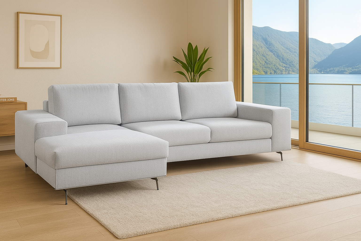 Rohová sedací souprava CHROME - pohodlná kvalitní sedací souprava. Sedací souprava má nádech luxusu díky chromové liště a nožkám, které se nachází ve spodní části.
