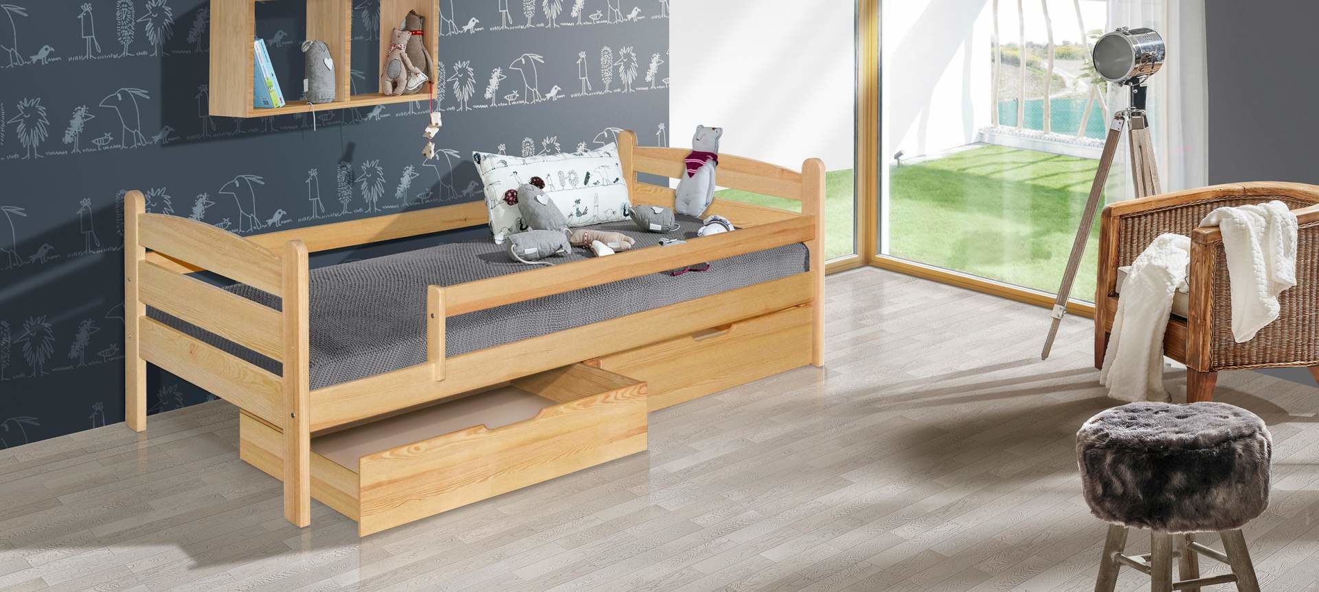 V dětském pokoji nesmí chybět dostatek místa pro spánek a odpočinek. K tomu účelu poslouží kvalitní postel vyrobena z výběrového masivu borovice. Tento stylový nábytek je vyroben z kvalitního masivu se zdravotně nezávadnou povrchovou úpravou, masiv zajistí optimální nosnost a stabilitu. Masivní nábytek se snadno čistí a je nenáročný na povrchovou údržbu. Díky výběru barevných variant je tento stylový nábytek vhodný pro dívky i chlapce. Jednoduchý a svěží design tohoto dětského nábytku oživí každý pokoj. Pod lůžkem naleznete úložný prostor v podobě dvou výsuvných šuplíků. V ceně je zahrnutý rošt. Nosnost lůžka je 70 kg.