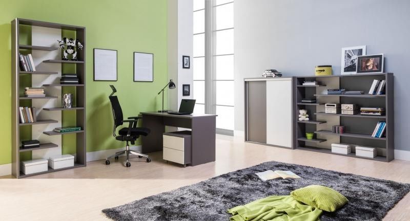 Sestava do kanceláře ZOONDA I - je moderní sestava do kanceláře vyrobena z kvalitního lamina v barevné kombinaci šedé a bílém lesku.