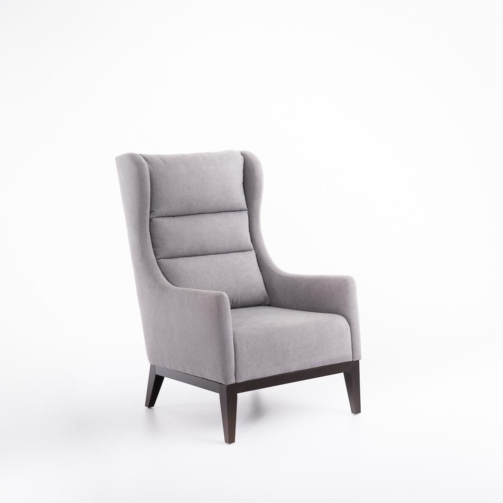 UŠÁK HOLLY - je pohodlné čalouněné křeslo v retro provedení na masivní dřevěné podnoži, kterou lze namořit do všech barevných odstínů REA STANDARD. Potahové látky lze vybírat ze vzorníku AVA.