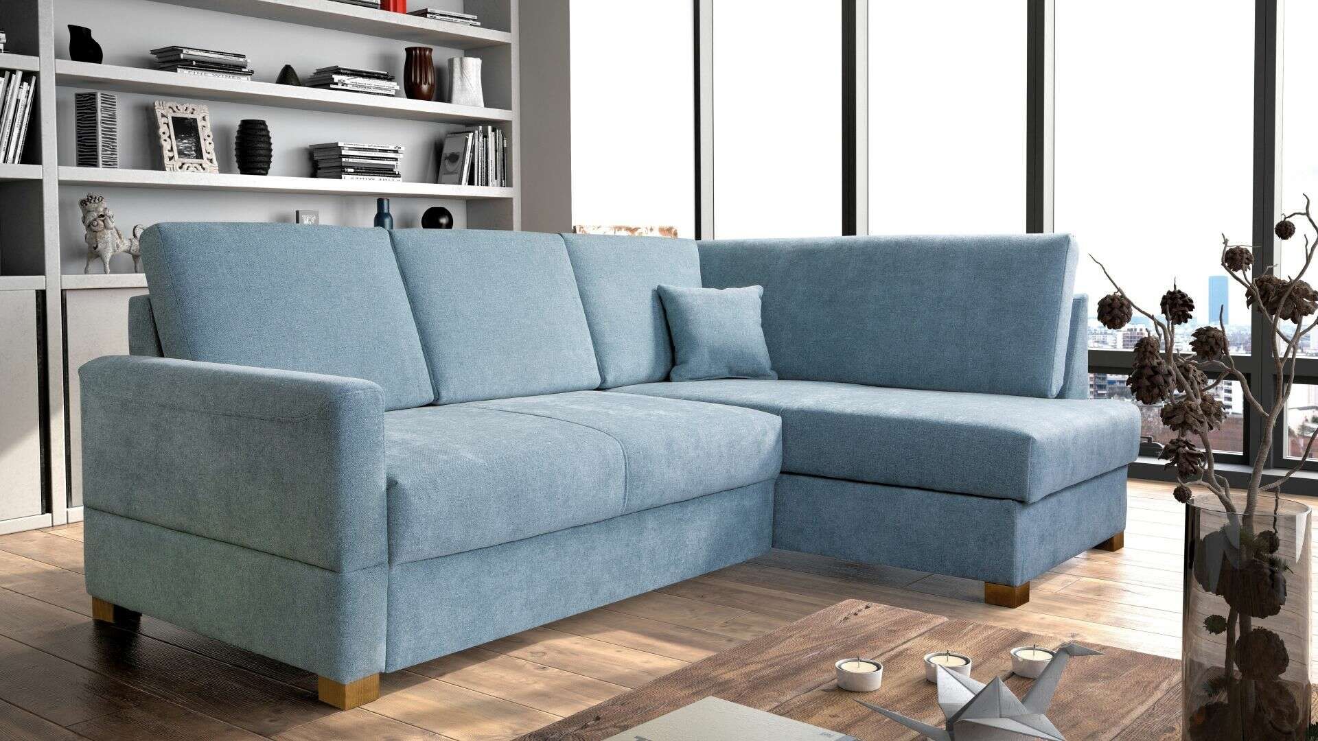 Sedací souprava FEN - moderní pohodlná sedací souprava s úložným prostorem a rozkladem na lůžko 140 x 200 cm. Jednoduchá a elegantní sedací souprava menších rozměrů.