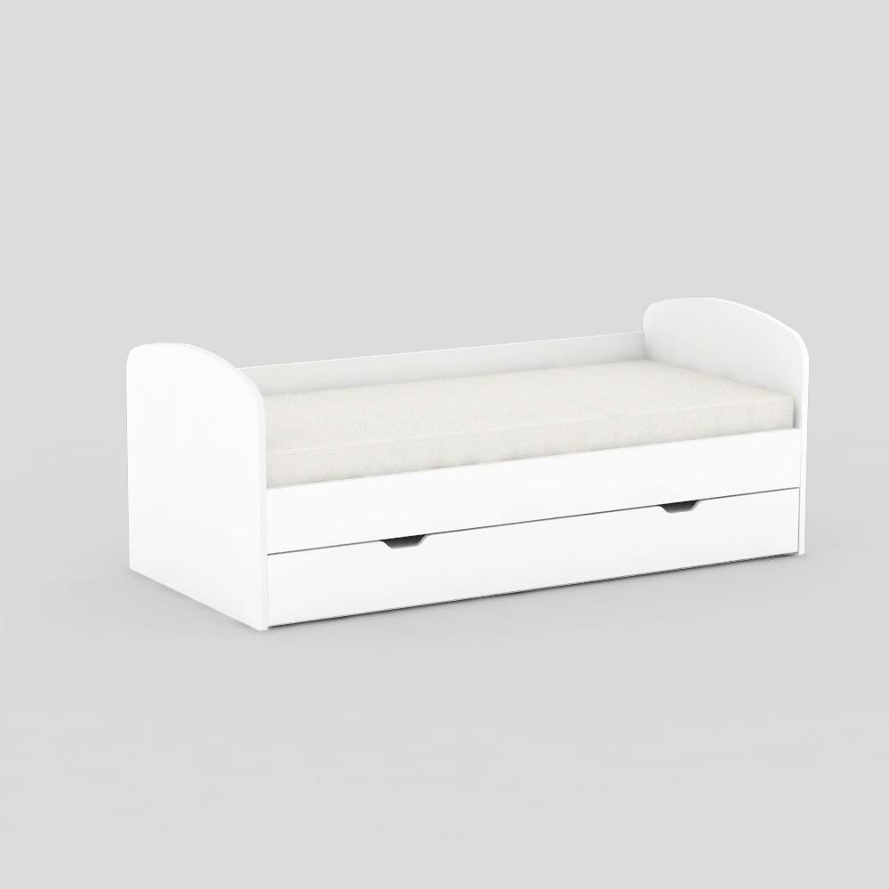 Moderní postel do dětského pokoje je vyráběna z kvalitní laminované dřevotřískové desky. A protože bezpečnost dětí je pro nás prioritou, tak postel má na okrajích zaoblené čela bez ostrých hran, které jsou spojeny pevnou bočnicí . Pod lůžkem na spaní se nachází praktická zásuvka s úložným prostorem například na dětské hračky nebo peřiny, které prostě vysunete díky kolečkům na spodní straně . Doporučená hmotnost jednoho jedince na postel je max. 150 kg . Postel je určena pro rozměr matrace 200 x 90 cm. Výška spodní matrace může být max. 15 cm. Ve variantách produktu je možnost objednat si postel včetně dvou kvalitních pěnových matrací se snímatelným potahem, rozměry matrací 90 x 200 x 12 cm.
