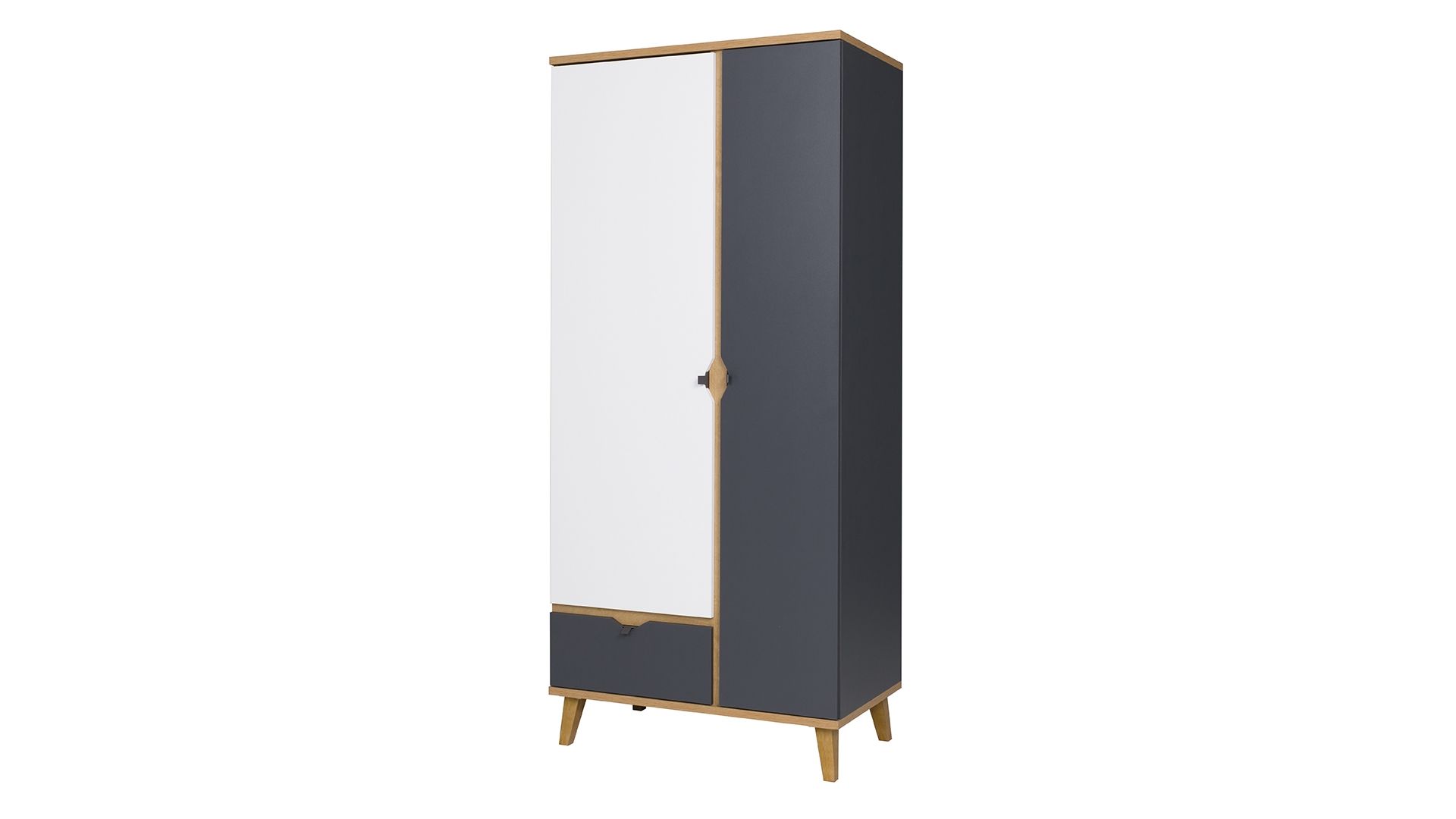 Vyzkoušejte originalitu s precizním řemeslným zpracováním v podobě moderní šatní skříně. Tato dveřová šatní skříň je díky své prostornosti a množství úložného prostoru praktickým pomocníkem v každé domácnosti. Stylová dveřová skříň dodá vašemu interiéru zajímavý vzhled a zaslouženou pozornost. Díky praktické šatní tyči pověsíte oblečení, které budete mít přehledně uspořádané v druhé polovině skříně jsou umístěny poličky. Šatní skříň je vyrobena z lamina, které věrně imituje reliéf dřeva. Lamino je tloušťky 16 mm. Šatní skříň je dostupná v oblíbeném barevném dekoru dub zlatý / graphite, bílá. Celkové zpracování detailů podtrhuje celkový moderní vzhled šatní skříně. Právě díky vnitřnímu uspořádání, ale také stylovému barevnému odstínu, je tato dveřová šatní skříň vhodná pro vybavení moderního interiéru. Tuto šatní skříň lze zakoupit samostatně a nebo jako součást variabilního nábytkového systému MAMONE.