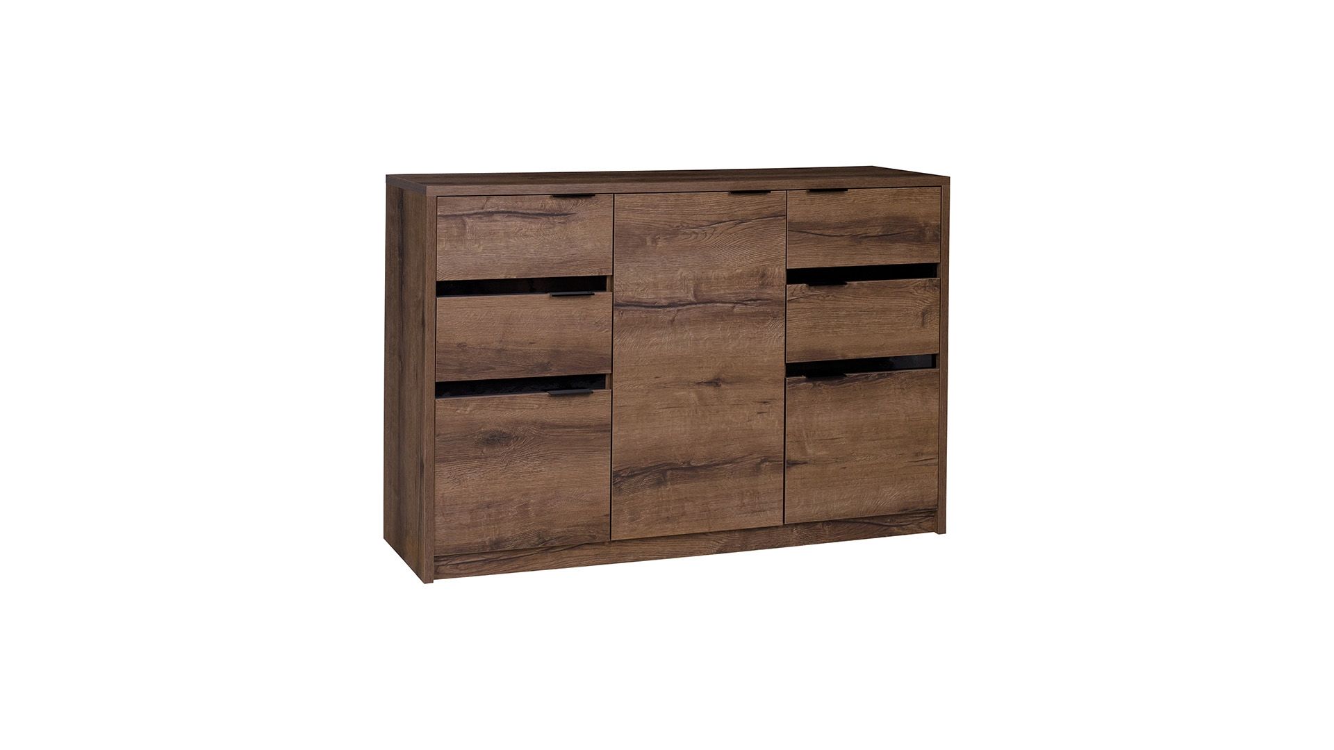 Vyzkoušejte originalitu s precizním řemeslným zpracováním v podobě moderní komody DANVER. Tato komoda je díky své prostornosti a množství úložného prostoru praktickým pomocníkem v každé domácnosti. Stylová komoda dodá vašemu interiéru zajímavý vzhled a zaslouženou pozornost. Díky praktickým policím budete mít vše přehledně uspořádané. Tato moderní komoda je vyrobena z lamina, které věrně imituje reliéf dřeva. Lamino je tloušťky 16 mm a poskytuje nábytku dostatečnou pevnost a stabilitu. Tento materiál je stálobarevný a odolný vůči mechanickému poškození, což zaručuje dlouhou životnost nábytku. Komoda je dostupná v oblíbeném barevném dekoru dub monastery / černý lesk. Právě díky vnitřnímu uspořádání, ale také stylovému barevnému odstínu, je tato designová komoda vhodná pro vybavení moderního interiéru. Hodí se jak do obývacího pokoje, ložnice ale také do jídelny.
