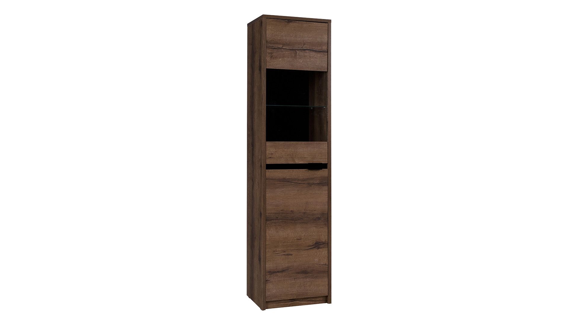 Vyzkoušejte originalitu s precizním řemeslným zpracováním v podobě moderní vitríny DANVER. Díky své prostornosti a množství úložného prostoru praktickým pomocníkem v každé domácnosti. Stylová vitrína dodá vašemu interiéru zajímavý vzhled a vystaveným předmětům zaslouženou pozornost. Díky praktickým policím budete mít vše přehledně uspořádané. Lamino je tloušťky 16 mm, poskytuje nábytku dostatečnou pevnost a stabilitu. Tento materiál je stálobarevný a odolný vůči mechanickému poškození, což zaručuje dlouhou životnost nábytku. Vitrína je dostupná v oblíbeném barevném dekoru dub monastery / černý lesk. Právě díky vnitřnímu uspořádání, ale také stylovému barevnému odstínu, je tato vitrína vhodná pro vybavení moderního interiéru. Hodí se jak do obývacího pokoje, pracovny ale také do jídelny.