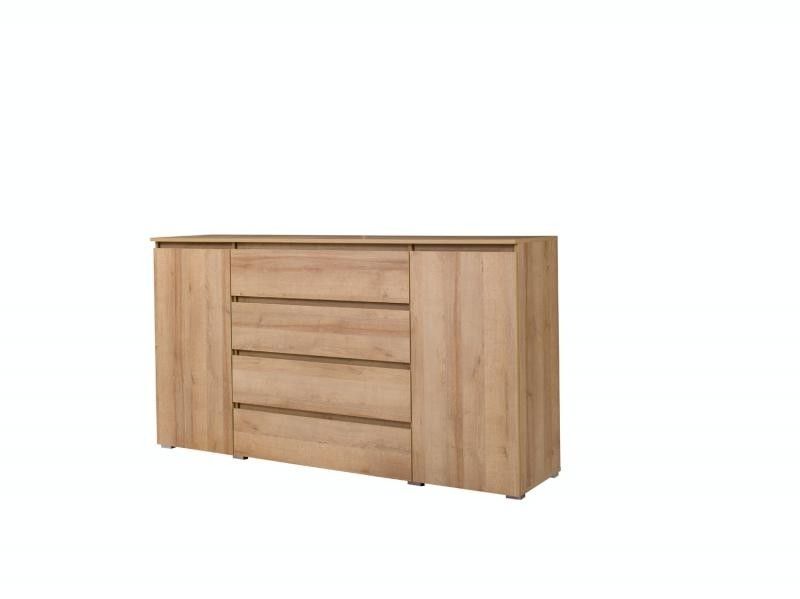 V každém dětském nebo studentském pokoji nesmí chybět dostatek místa pro uložení drobností, knížek, hraček a hlavně oblečení. Moderní široká komoda do studenského nebo dětského pokoje ze série KOSMO je prostorná s čtyřmi šuplíky a dvěma uzaviratelnými praktickými policemi. Tento stylový nábytek je vyroben z kvalitní laminované dřevotřísky s odolnou ABS hranou. Lamino zajistí optimální nosnost a stabilitu, je stálobarevné, snadno se čistí a je nenáročné na povrchovou údržbu. Díky barevnému dekoru bílé,dubu sonoma a dubu riviera je tento studentský nábytek vhodný pro dívky i chlapce všech věkových skupin.