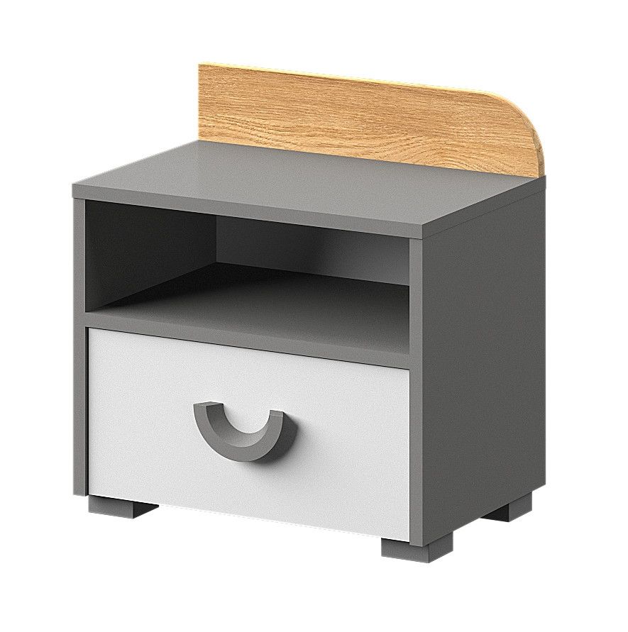 Noční stolek CARINI 12 - je moderní skříň vyrobená z kvalitního lamina v dekoru dub Nash/ bílá matná/ grafit.