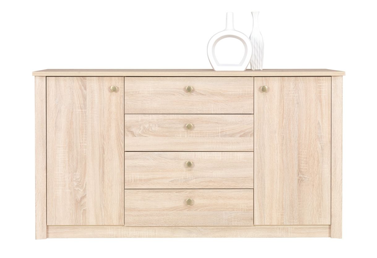 Moderní kombinovaná komoda v minimalistickém designu se stane zajímavým prvkem Vašeho interiéru. Praktická kombinovaná komoda má úložný prostor rozdělený na dvě boční skříňky a čtyři úložné šuplíky umístěné ve středu komody. Komoda je vyrobena z kvalitního lamina s odolnou ABS hranou 0,5mm. Tento materiál se vyznačuje vysokou odolností vůči oděru i vlhkosti a je nenáročný na povrchovou údržbu. Jedná se o pevný a kvalitní nábytek, který se stane stylovým doplňkem vaší domácnosti, chaty či chalupy. Je součástí variabilní sektorové nábytkové sestavy Finezia.