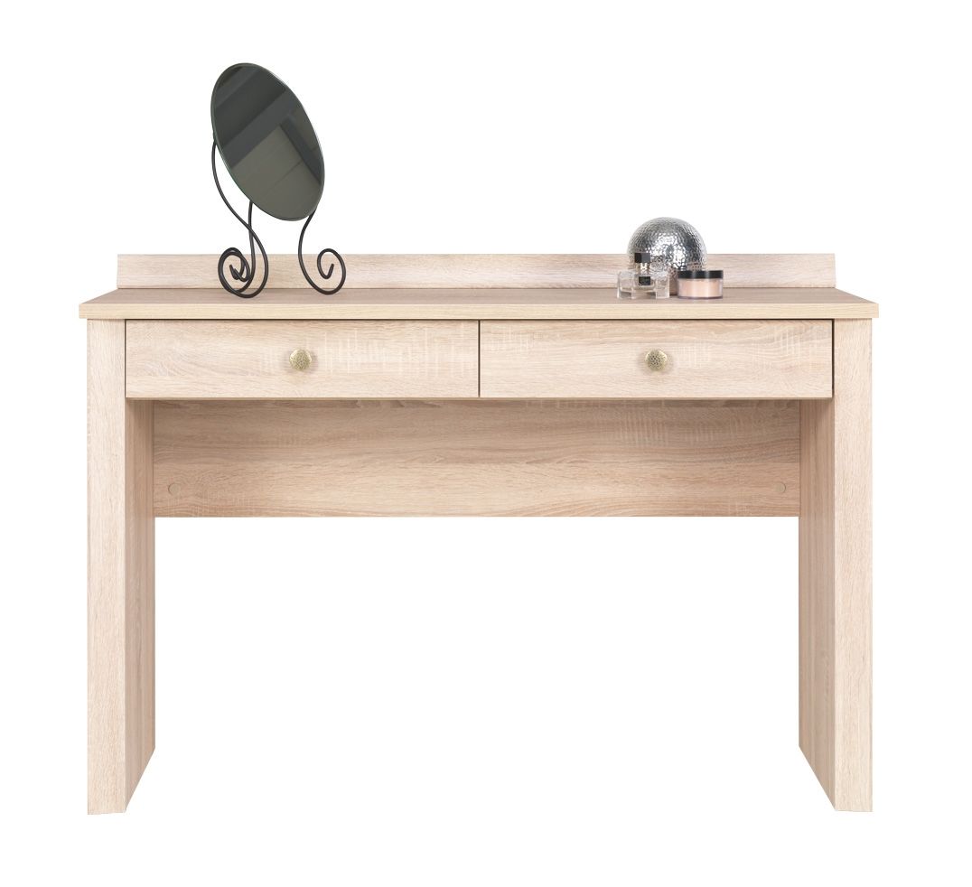 Toaletní stolek Finezia je oblíbený zvláště pro svůj originální, nadčasový a atraktivní design. Své příznivce si najde hlavně proto, že na první pohled působí velice elegantně a má kvalitní povrchovou úpravu. Pod totožným označením Finezia naleznete v naší nabídce mnohé další komponenty ve stejném stylu, které můžete s jistotou, že spolu budou dokonale ladit libovolně kombinovat. Dekor lamina věrně imituje reliéf dřeva, který je dostupný v oblíbeném dekoru - dub sonoma. Je součástí variabilní nábytkové sestavy do ložnice FINEZIA.