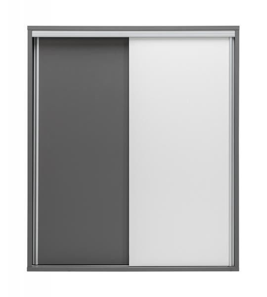 Skříňka ZOONDA 09 - je moderní skříňka s posuvnými dveřmi, vyrobená z lamina s ABS hranou v neutrální barevné kombinaci šedé a bílého lesku