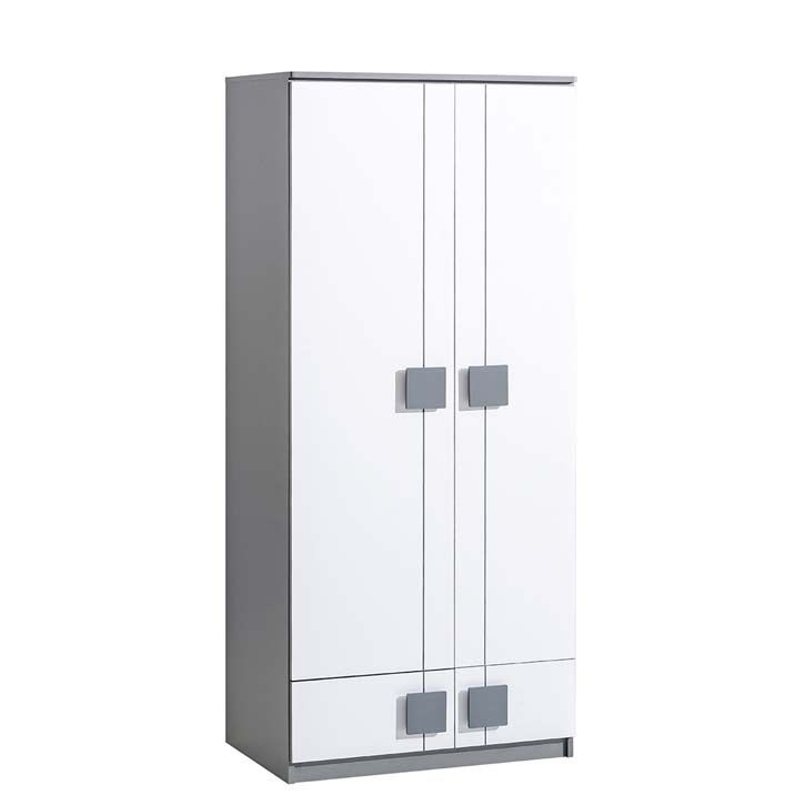 Šatní skříň GUMI 1 - je moderní skříň do dětského nebo studentského pokoje vyrobena z lamina s ABS hranou v brilantově bílé barvě v kombinaci s antracitem.