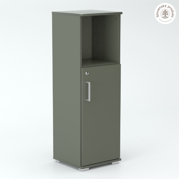 Praktický variabilní nábytkový systém REA OFFICE je úložné řešení určené do pracovny, kanceláře nebo jako praktický úložný prostor do domácnosti. Odolností vůči mechanickému poškození a vlhkosti jsou vhodné dokonce i do koupelny nebo kuchyně. Ve spodní části skříní se nacházejí 2 cm vysoké nožičky kovového vzhledu. Součástí skříně jsou 2 police a dvířka skříně jsou opatřeny úchatkami a zámkem pro možné uzamčení skříně.