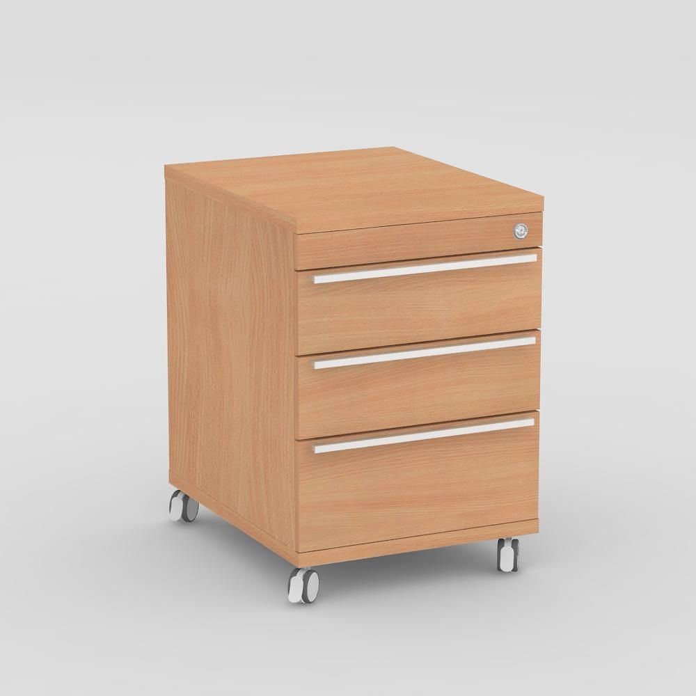 Tento praktický pojízdný kontejner je vyroben z laminované dřevotřískové desky tloušťky 16 mm s ABS hranou, vrchní a spodní deska je tloušťky 25 mm a je rovněž opatřena ABS hranou.