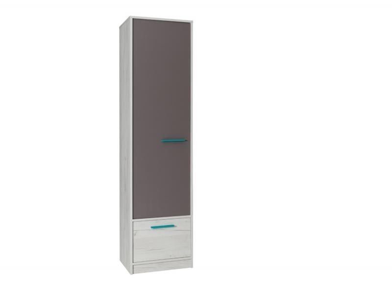 je moderní skříň do dětského nebo studentského pokoje vyrobena z lamina s ABS hranou v kombinaci dekoru Dub Craft bílý / šedá.