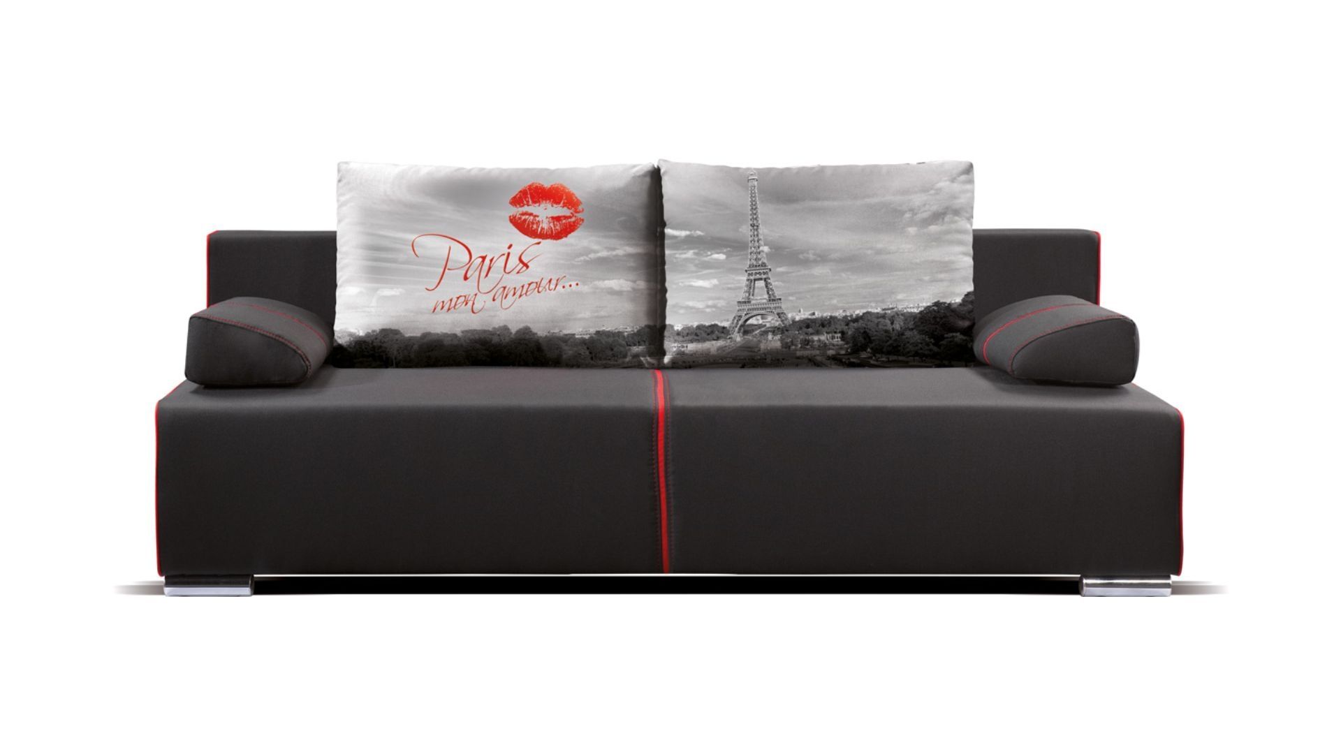 POHOVKA PLAY NEW XXL PARIS - originální a pohodlná polštářová pohovka s rozkladem na lůžko 134 x 202 cm. Vzor speciálního 3D pogumovaného potisku na polštářích.