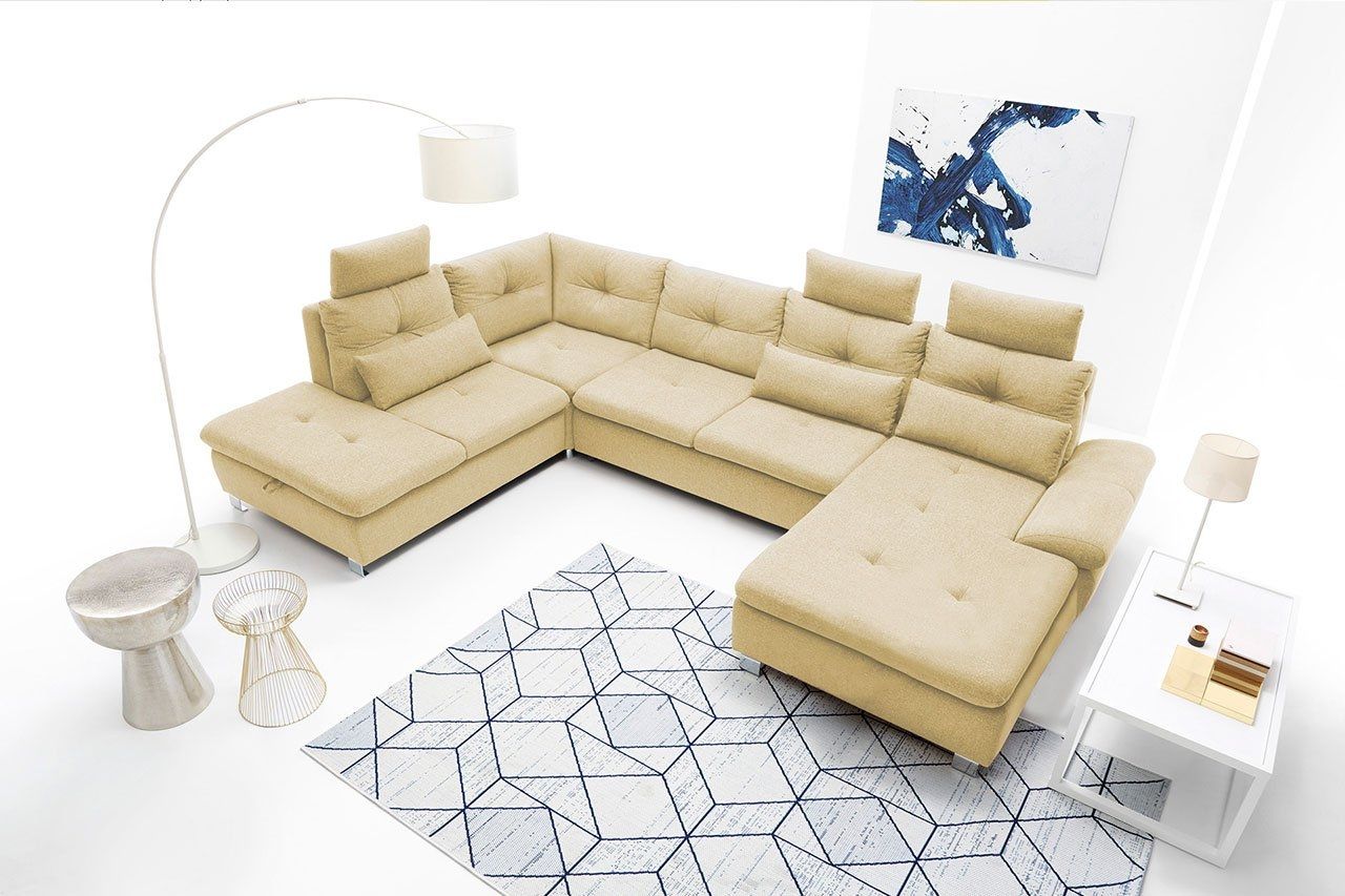 - pohodlná a kvalitní sedací souprava do U s úložným prostorem a rozkladem na lůžko 282 x 136 cm. Široký výběr kvalitních potahových látek.