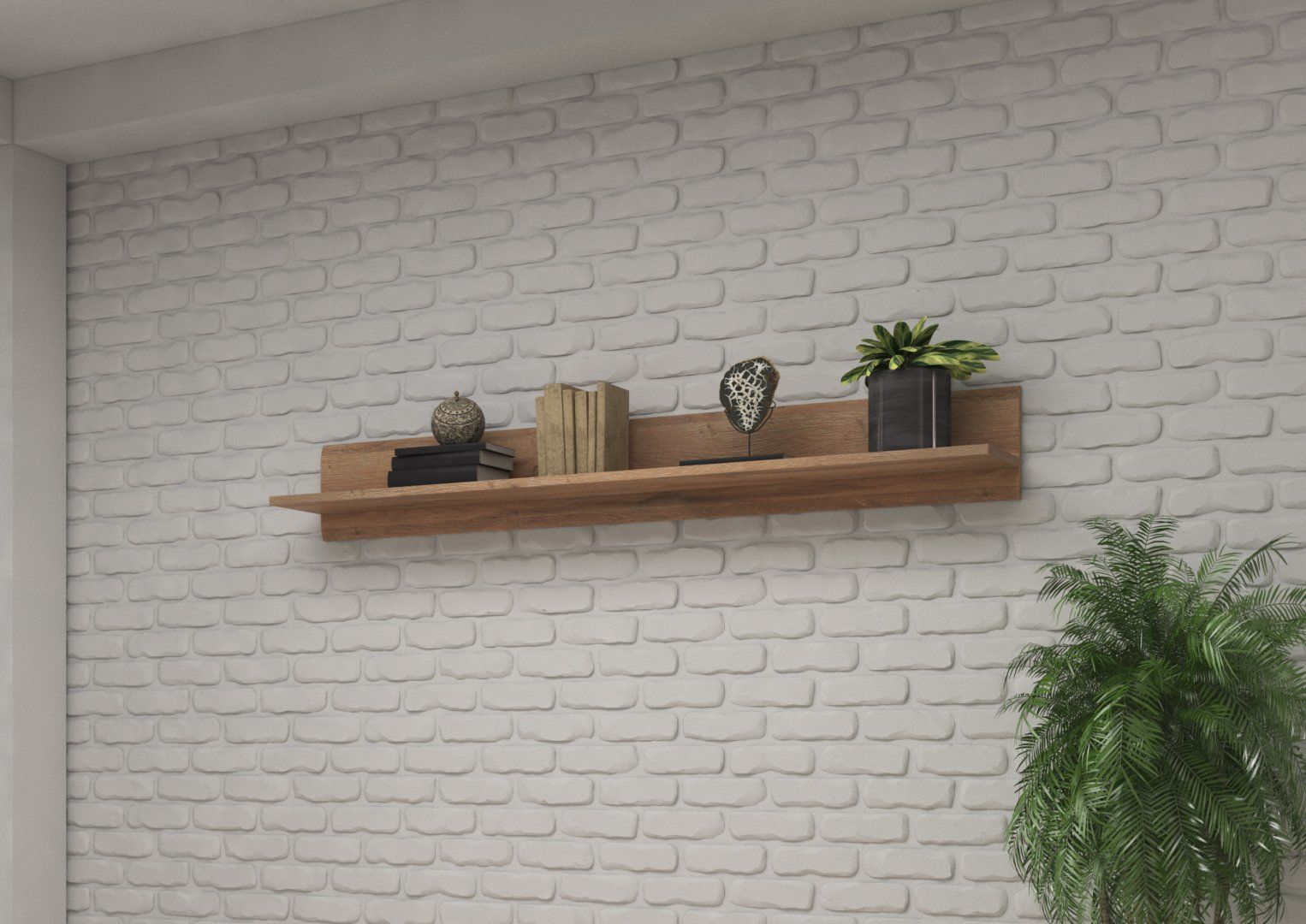 Moderní závěsná polička je řešením pro vystavení fotorámečků, knih anebo upomínkových předmětů.
