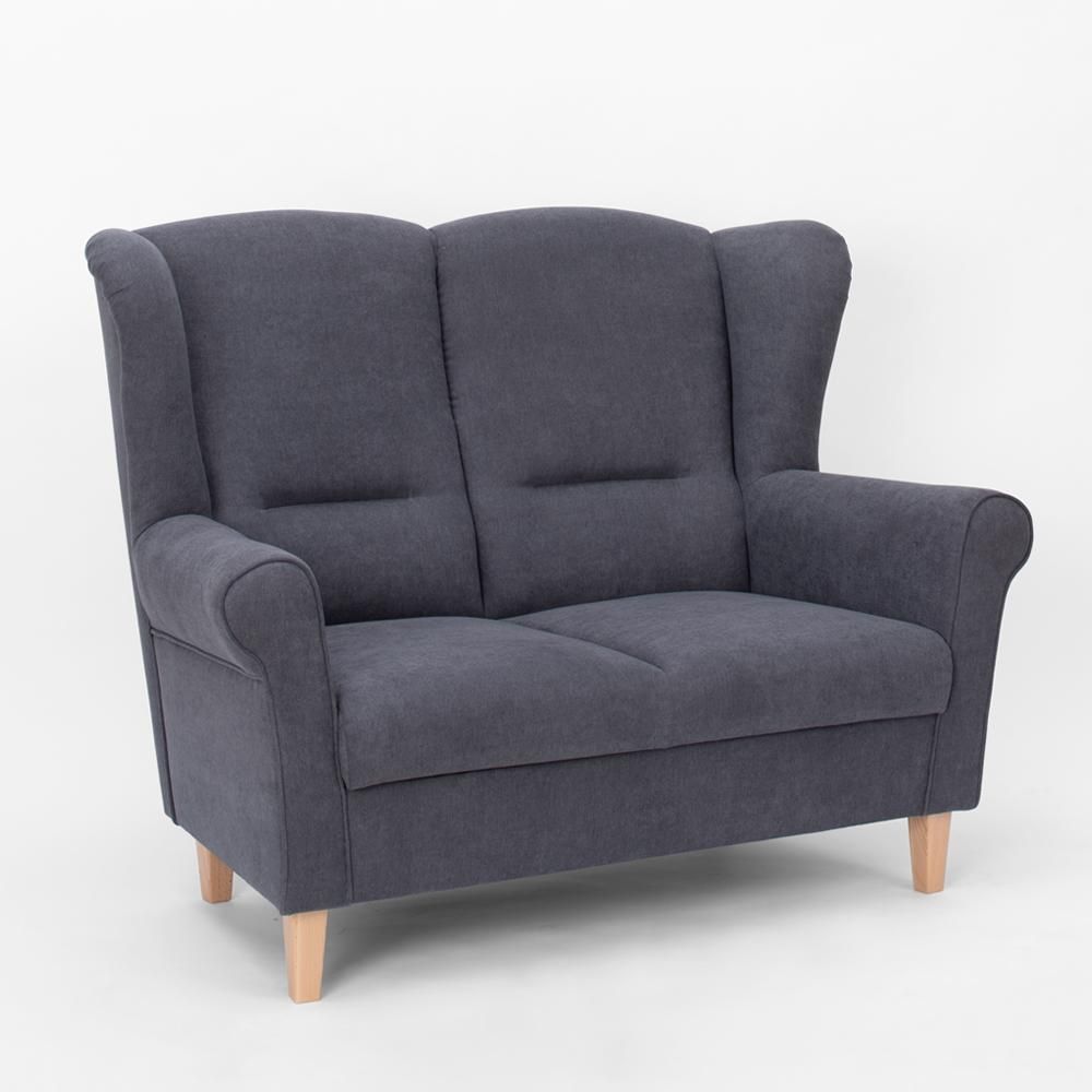 Pohovka JIM 2 - je pohodlná čalouněná pohovka v retro provedení na masivních dřevěných nohách, které lze namořit do všech barevných odstínů REA STANDARD.