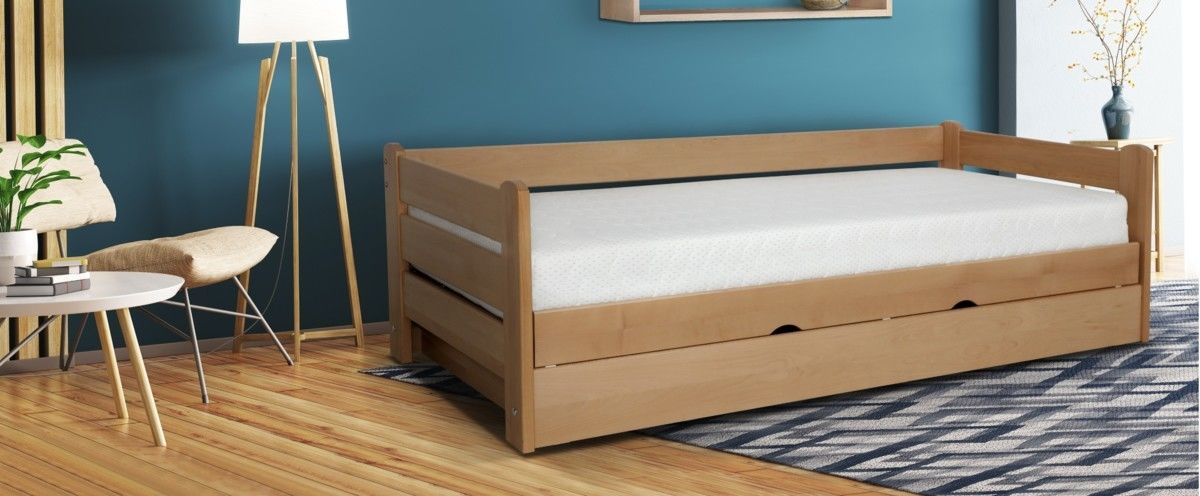 V dětském pokoji nesmí chybět dostatek místa pro spánek a odpočinek. K tomu účelu poslouží kvalitní postel vyrobena z výběrového masivu buku. Tento stylový nábytek je vyroben z kvalitního masivu se zdravotně nezávadnou povrchovou úpravou, masiv zajistí optimální nosnost a stabilitu. Masivní nábytek se snadno čistí a je nenáročný na povrchovou údržbu. Díky výběru barevných variant je tento stylový nábytek vhodný pro dívky i chlapce. Jednoduchý a svěží design tohoto dětského nábytku oživí každý pokoj. Dětská postel je opatřena přistýlkou. Pod lůžkem přistýlky naleznete úložný prostor, který se otevírá jednoduchým vyklopením. V ceně je zahrnutý výklopný rošt. Matraci na hlavní lůžko je potřeba přikoupit.