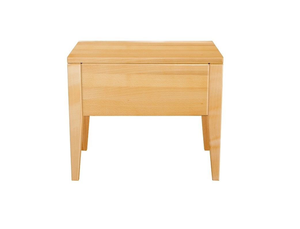 Noční stolek z masivu je určen pro milovníky přírodních materiálů, především kvůli svému jednoduchému elegantnímu designu. Vyrábí se z kvalitního precizně zpracovaného masivu buku. Barvu masivního buku je přírodní nebo několika krásných barevných odstínech. Noční stolek má zaoblené hrany a tvoří dokonalý dojem s některou z manželských postelí LK. Minimalistický design nočního stolku je vhodný do každého interiéru.
