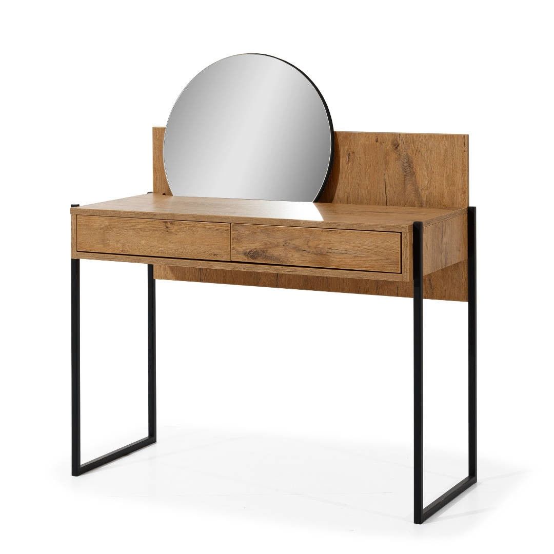 Toaletní stolek LOOFT LFTOL - je elegantní toaletní stolek se zrcadlem, vyroben v barevném provedení dub Lancelot v kombinaci s černým kovovým rámem v industriálním stylu.