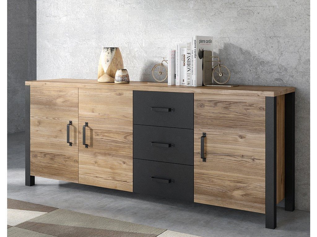 Komoda OLIN Vám poskytne dostatek místa pro vystavení všech věcí, jako jsou knihy, obrázky nebo trofeje. Moderní komoda z kolekce OLIN dokonale zapadne do každého interiéru. Kombinace přírodního Appenzellského smrku s prvky černého matu je návrhem pro milovníky moderního stylu. K dispozici jsou komody, vitríny a konferenční stolek.
