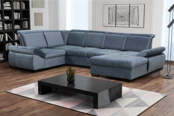 Velká sedací souprava SELY jednoduchý, krásný a kvalitní nábytek, který zaujme svým moderním designem. Majitelé těchto sedaček u nich ocení zejména jejich výbornou kvalitní povrchovou úpravu a velké pohodlí při posezení, jelikož její výplň jsou vysoce kvalitní středně tvrdé pěny. Kostra je vyrobena z měkkého a tvrdého dřeva. Sedačka je celo čalouněná, přičemž k ní náleží velký výběr potahových látek. Vybrané potahové látky uveďte při objednávce do poznámky, popřípadě nás kontaktujte. Provedení sedáku a opěráku sedací soupravy je pevné, vysoké, což má za důsledek pohodlné sezení. Sedací souprava má nastavitelnou hloubku sedu 53 cm a hlubší 73 cm. Díky tvaru U má dvě lehátka. Sedačka je rozkládací a její plocha na spaní je šířky 140 cm a délky 277 cm. Má polohovací opěrky hlavy a úložný prostor, do kterého jdou uschovat peřiny, deky či jiné předměty. Sedačku nabízíme ve 5 cenových skupinách.