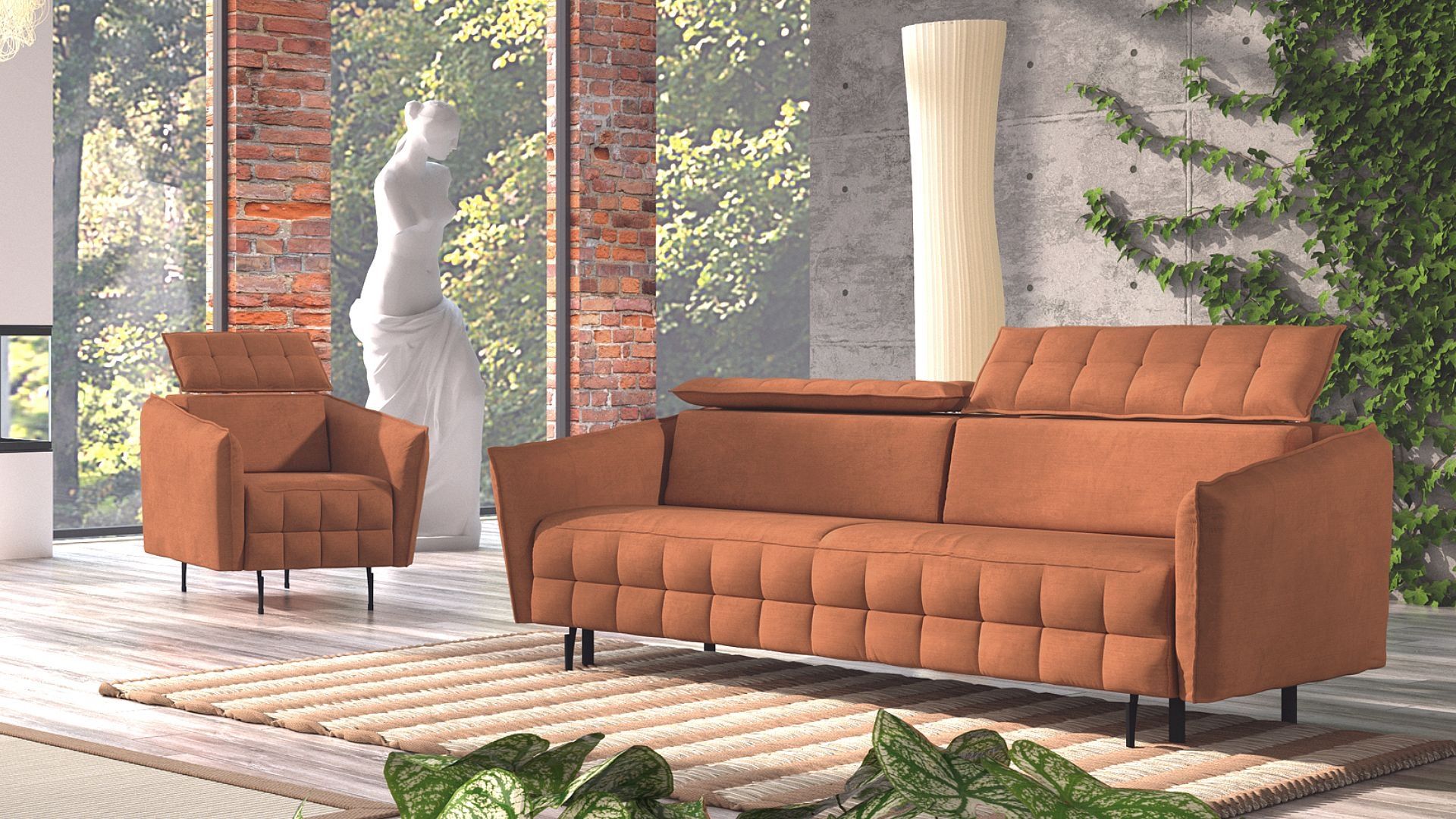 Křeslo MOLTA je kombinací moderního designu, elegance a pohodlí. Mírně rozdělené strany vás dokonce zvou k odpočinku. Má krásné provedení v podobě ozdobného prošití a je ideální na vytvoření stylového interiéru. Pohyblivé opěrky hlavy lze nastavit do vhodné roviny a získat odpovídající úhel sklonu. Opěrky hlavy jsou namontovány v upevňovacích zásuvkách - ve spací verzi jsou opěrky hlavy vytaženy. Díky použití dvojitého odpružení bylo dosaženo velmi vysokého komfortu používání. Majitelé tohoto křesla u něj ocení zejména jeho výbornou kvalitní povrchovou úpravu a velké pohodlí při posezení, jelikož jeho výplní je kombinace kvalitní HR vysoce-elastické pěny s pružinami Falliste a Bonell. Masivní boční opěrky umožňují pohodlné podložení rukou či hlavy. Kostra je vyrobena z měkkého a tvrdého dřeva. Křeslo je celočalouněné, přičemž k němu náleží velký výběr potahových látek. Vybrané potahové látky uveďte při objednávce do poznámky, popřípadě nás kontaktujte. Provedení opěráku křesla je vysoké, čímž je zaručeno pohodlné sezení.