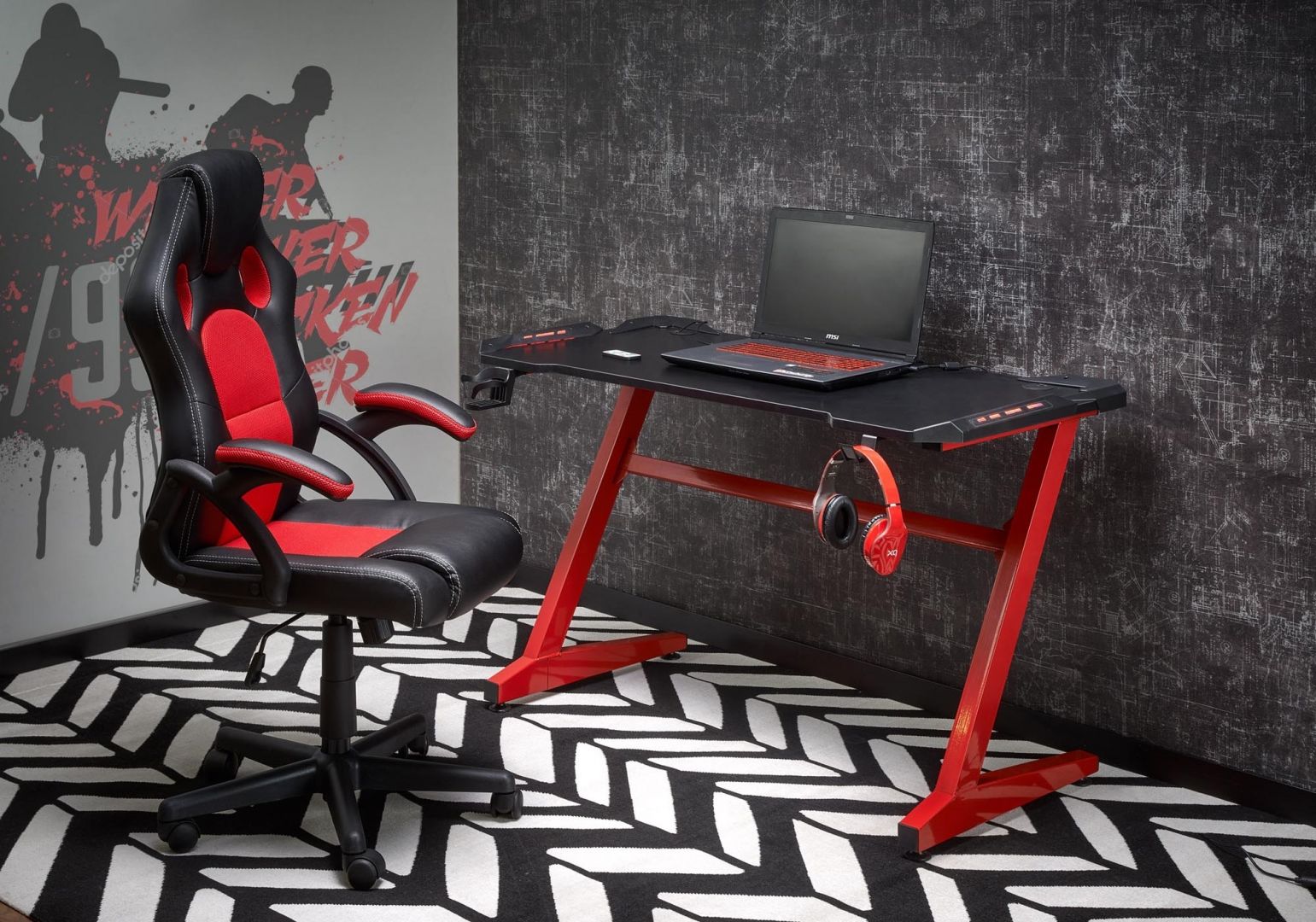 Originální design, trendy povrchová úprava v dekoru černý / červený a kvalitní použité materiály při výrobě, to vše vám stůl může nabídnout. Ocelová konstrukce v černo červené barvě a dýhovaná MDF deska v dekoru černým. Stolek je vhodný do studentského pokoje, pracovny anebo kanceláře. Díky praktickým rozměrům se stane spolehlivým pomocníkem při práci anebo studiu.