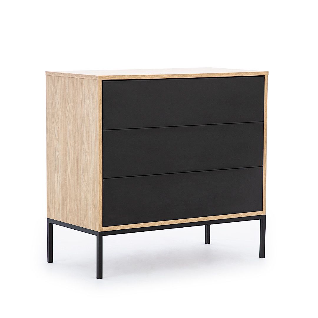 Komoda BLACK LOOFT 3S - je elegantní komoda vyrobena v barevném provedení černá / dub olejový v kombinaci s černým kovovým rámem a v industriálním stylu.