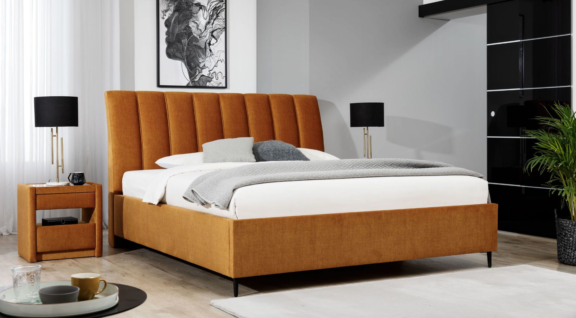 - je luxusní čalouněná postel vyrobená z lamina a čalouněná v různých potahových materiálech. V nabídce lůžka 140, 160, 180 a 200 x 200 cm. Možnost úložného prostoru. Na výběr je ze dvou variant výška čela: 100 a 120 cm.