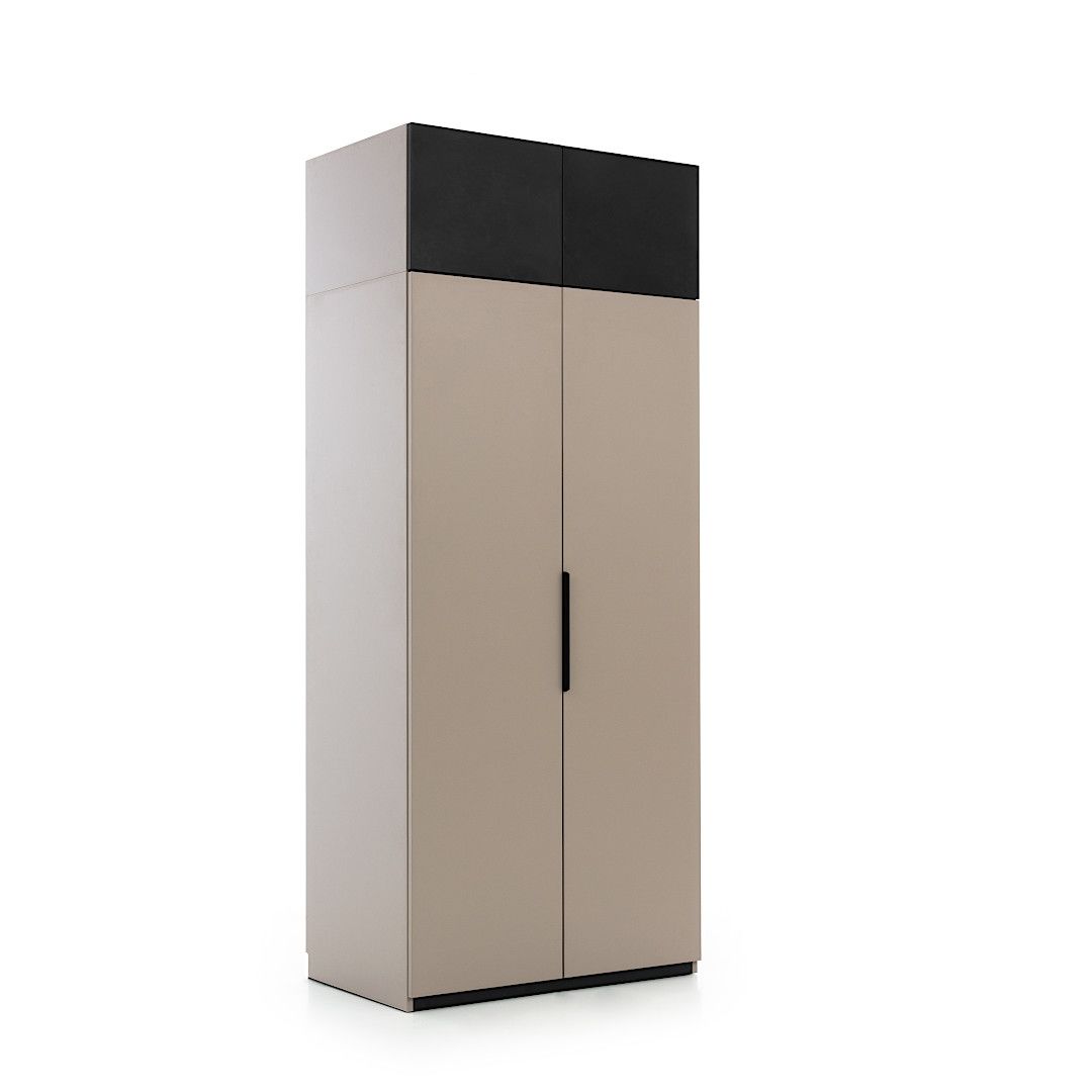 Šatní skříň s držáky a policemi Uficio 2D - je elegantní skříň vyrobena v barevném provedení černá mat / šedá.