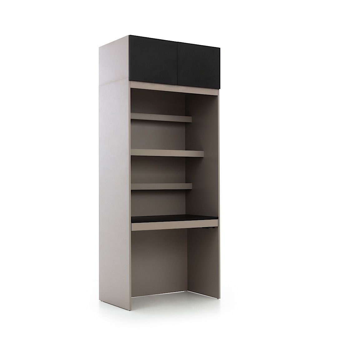 Regál se stolkem Uficio - je moderní a praktický regál s policemi a stolkem, vyroben v barevném provedení černá mat / šedá.