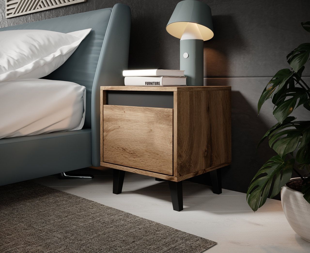 Noční stolek NOORD - je moderní noční stolek s prakticky řešeným vnitřním uspořádáním Vám zaručí, že vše naleznete přehledně na svém místě.
