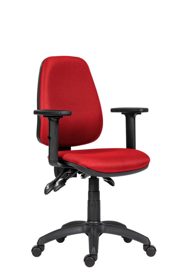 Kancelářská pracovní židle se středně vysokým opěrákem, ASYN - asynchronní mechanismus, nezávislé nastavení úhlu sedáku a opěráku s možností aretace v libovolné pozici, nastavení výšky opěráku mechanismem up-down, výškové nastavení sedáku plynovým pístem, plastová nebo ocelová chromovaná báze, kolečka Ø 50 mm pro měkké podlahy, volitelné područky, český výrobek.