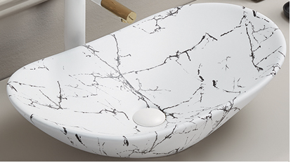 Keramické umyvadlo v moderním vzhledu se vyznačuje nejvyšší kvalitou zpracování materiál keramika v provedení Bílý mat se strukturou připomínající mramor. Umyvadlo je vhodné umístit na desku, kde si ho můžete umístit dle potřeby.