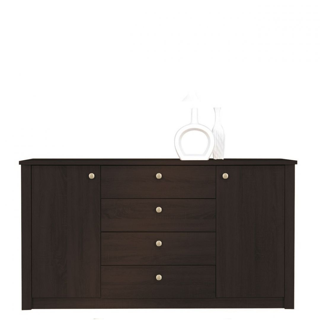 Moderní kombinovaná komoda v minimalistickém designu se stane zajímavým prvkem Vašeho interiéru. Praktická kombinovaná komoda má úložný prostor rozdělený na dvě boční skříňky a čtyři úložné šuplíky umístěné ve středu komody. Komoda je vyrobena z kvalitního lamina s odolnou ABS hranou 0,5mm. Tento materiál se vyznačuje vysokou odolností vůči oděru i vlhkosti a je nenáročný na povrchovou údržbu. Jedná se o pevný a kvalitní nábytek, který se stane stylovým doplňkem vaší domácnosti, chaty či chalupy. Je součástí variabilní sektorové nábytkové sestavy Finezia.